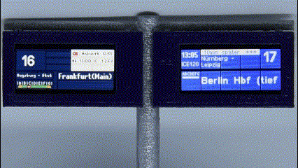 Alle neu ausgelieferten Modelle erhalten ab sofort zwei Varianten einer Fallblatttafel. Beide sind umfangreich animiert und bilden auf eindrucksvolle Weise den Fallblatteffekt großer Bahnhofsanzeigen nach. Alle bisher ausgelieferten Module sind updatefähig. Auf Anfrage kann das Modul auch mit größeren Displays bis 3,2 Zoll geliefert werden.